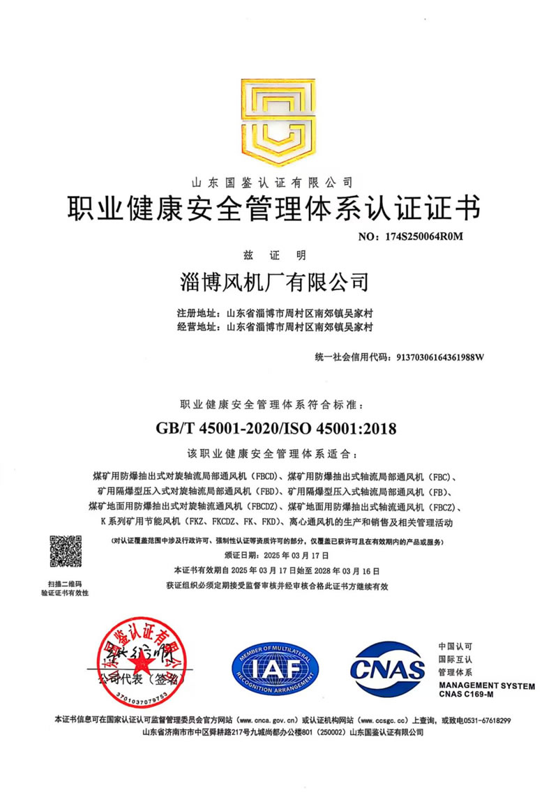 熱烈慶祝:一、淄博風(fēng)機廠(chǎng)有限公司全系產(chǎn)品通過(guò)能效綠色節能環(huán)保二級認證. 二、 淄博風(fēng)機廠(chǎng)有限公司通過(guò)安全標準化驗收合格. 三、注冊資金增資至7800萬(wàn).